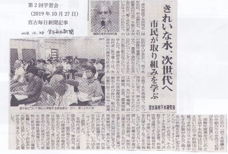 ●宮古毎日新聞:勉強会は「水道水中複数農薬成分、微量なら安全か?」のテーマで新しい農業の方向性を模索する目的で開かれた。
